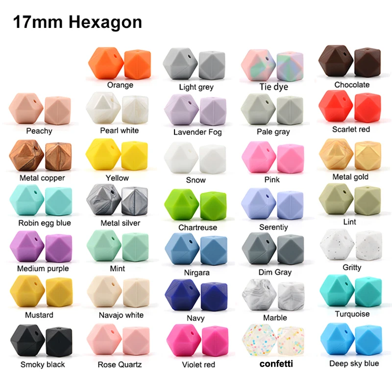 Оптовая продажа, большие шестигранные силиконовые бусины для прорезиненное Силиконовое ожерелье для прорезывания зубов, бусины для прорезывания зубов, безопасные бусины для прорезывателя зубов