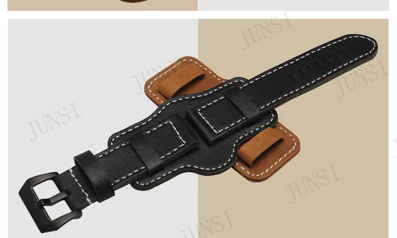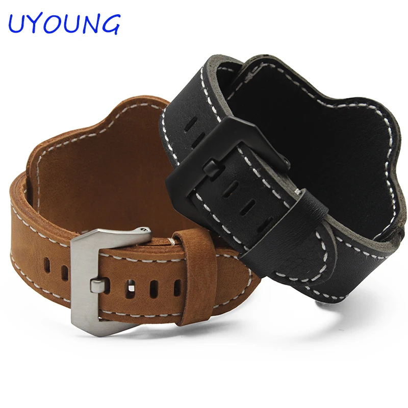 Качественный Браслет-манжета 20 мм 22 мм 24 мм 26 мм, кожаный ремешок для наручных часов, черныйкоричневый декоративный стильный ремень для мужчин