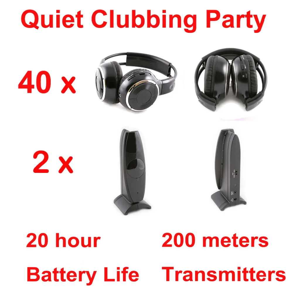 Бесшумная диско полная система черные складные беспроводные наушники-тихий набор клубных вечеринок (40 наушников + 2 передатчика)