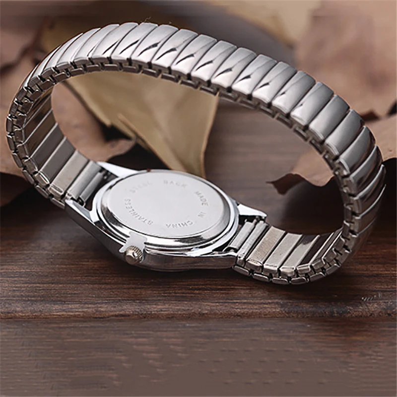 Мужскиеженские модные повседневные кварцевые часы из нержавеющей стали, с эластичным ремешком, регулируемые наручные часы, Прямая поставка