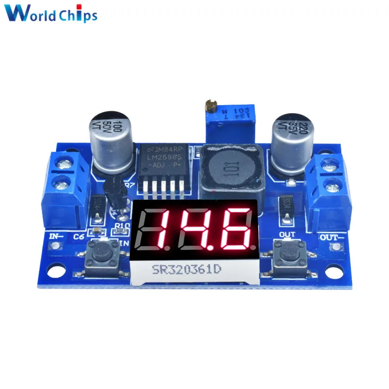Понижающий преобразователь напряжения LM2596, постоянный ток, 4,0-40 В до 1,25-37 в, 2 А, регулируемый регулятор напряжения со светодиодным вольтметром