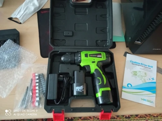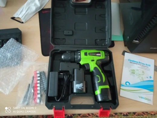 Доставка быстрая со склада в РФ курьером Почты России. Первое впечатление- такой маленький чемоданчик- раза в два меньше чем у моего шуруповерта ДеВолт. Сборка хорошая, пластик нормальный, легкий. Мне для домашних работ по деревяшкам самое оно- подлезть удобно, когда собираешь какую-нибудь полку, сверлит, крутит шурупы хорошо (патрон до 10мм). Не гайковерт, конечно, уступает именитым производителям) Думаю, еще один с зарплаты прикуплю- в один сверло, в другой биту- удобно.