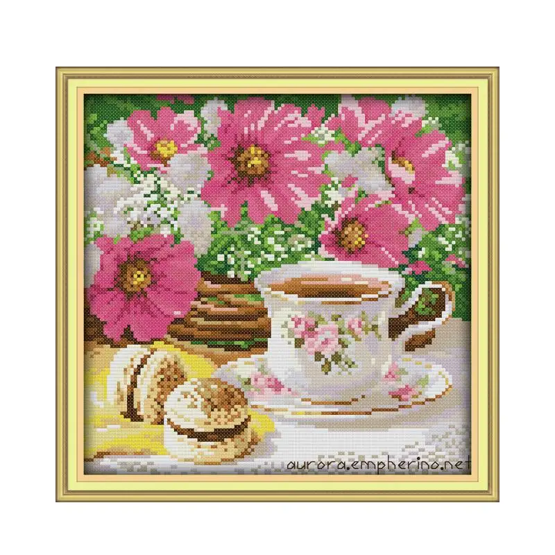 Набор для вышивки крестиком послеобеденный чай цветок еды натюрморт 18ct 14ct 11ct холст с принтом для рукоделия