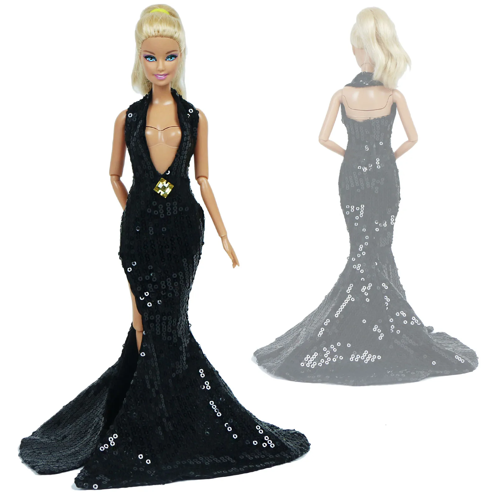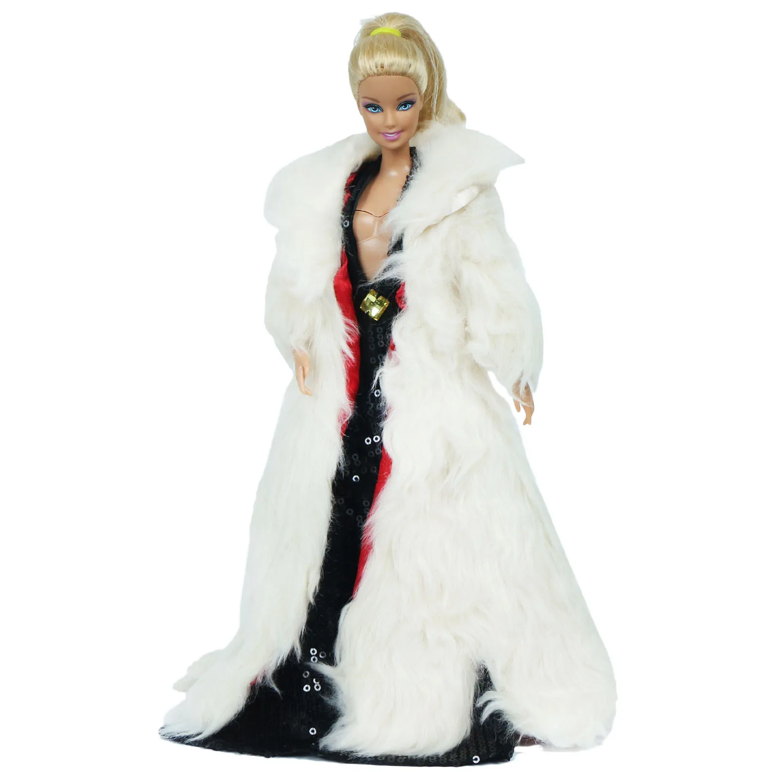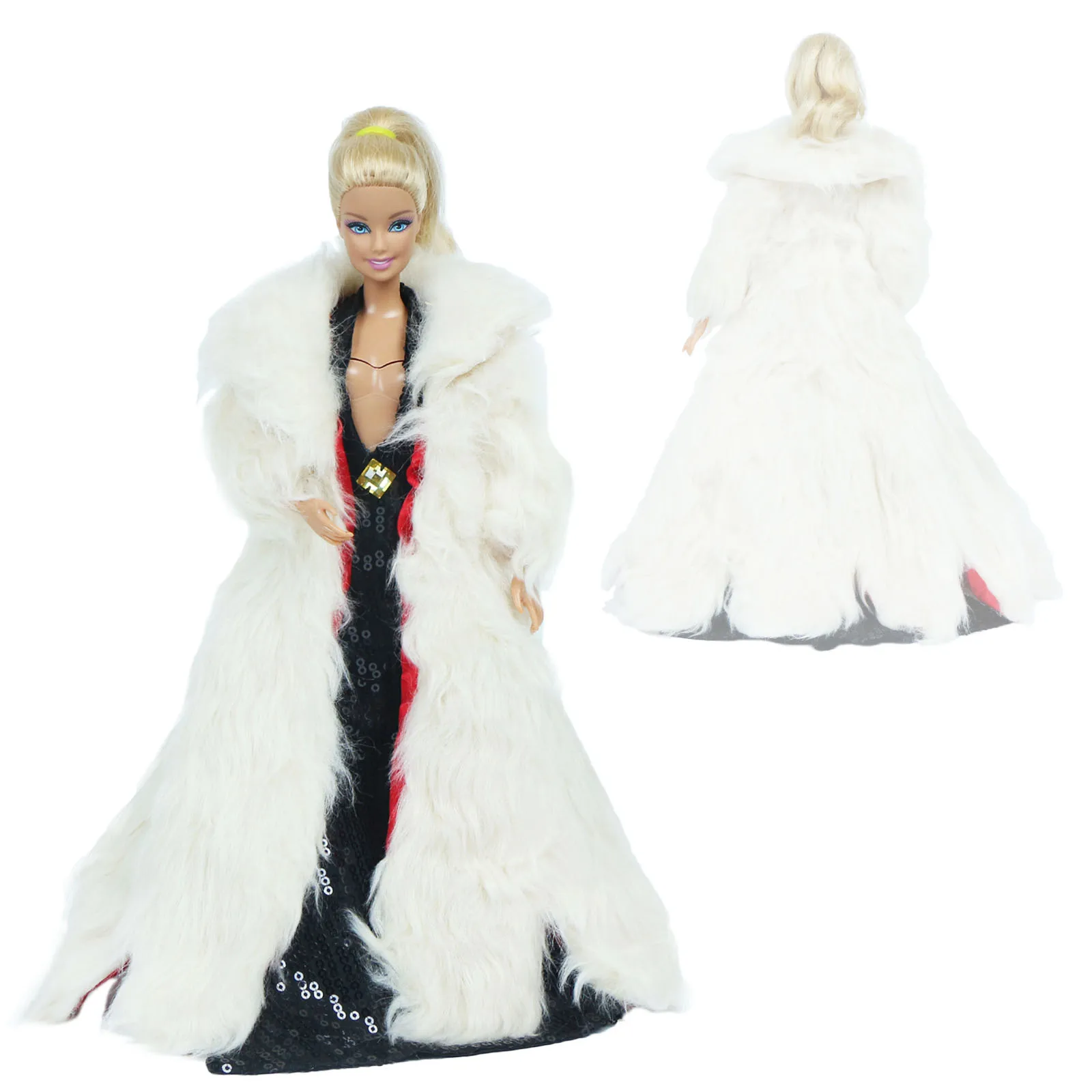 Черное платье с блестками и глубоким V-образным вырезом, белое пальто, Одежда для кукол Барби, аксессуары для дома, игрушек