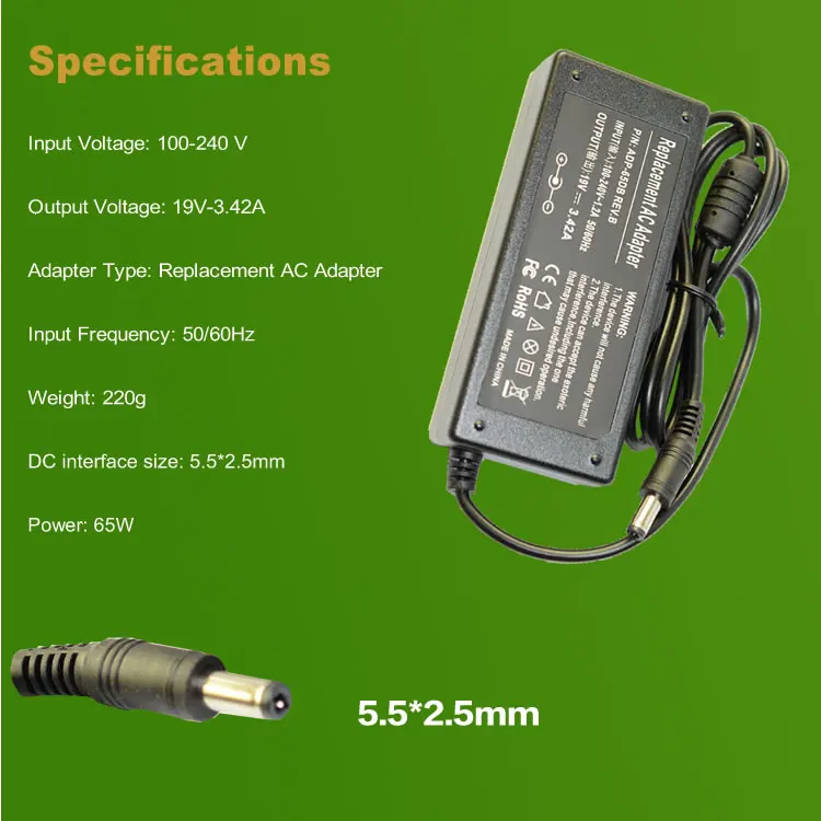Замена 19V 3.42A 5,5*2,5 MM 65W для LenovoAsusToshibaBenQ x550c A52...