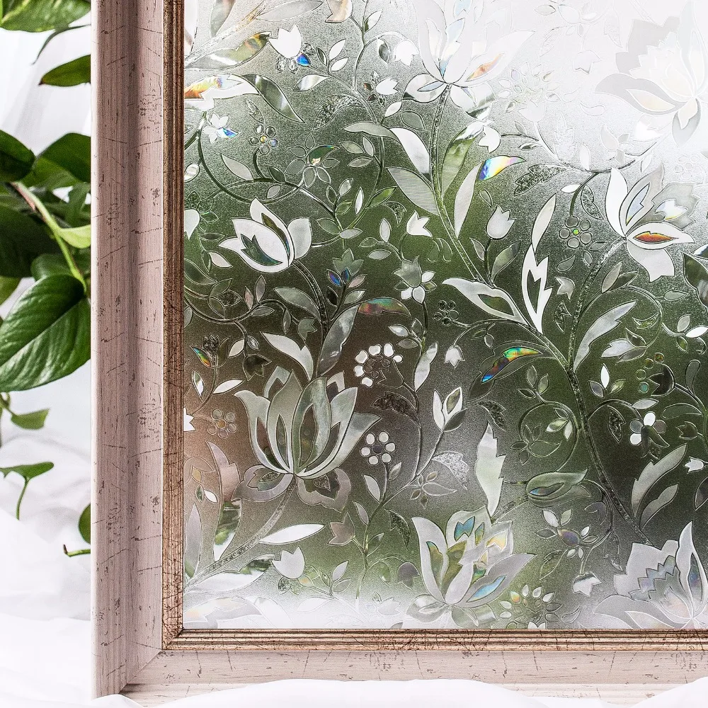 CottonColors Спальня Ванная Комната ПВХ Оконные Пленки Без Клея Статические 3D Цветок Украшения Конфиденциальности Оконное Стекло Стикер Размер 60 х 200 См