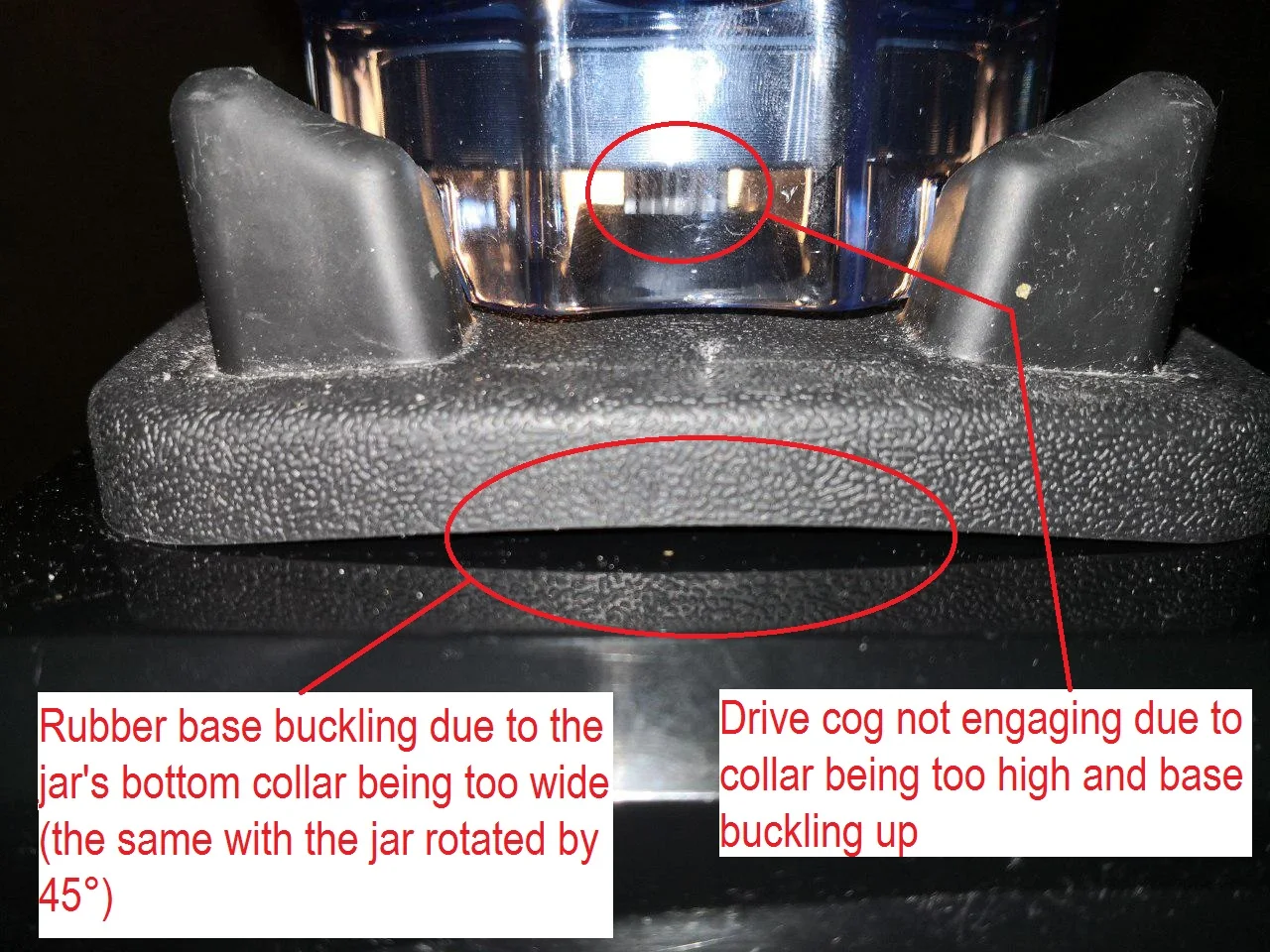 Немного свободно на витамикс Pro 300 (должен быть таким же, как на других классических сериях). Как результат, сосуд можно слегка отодвинтить от центра, делая шлифовальный шум (и я думаю, что зубцы соединения носят больше). В противном случае это очень высокое качество.