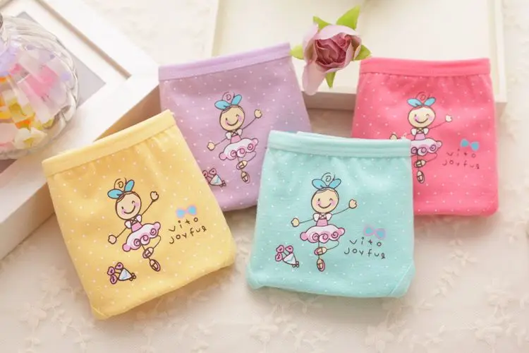 4 шт.Лот, 100% хлопок, в горошек, Мультяшные трусы для девочек, нижнее белье, треугольные брюки, подходящие для фотодевушек, TNN0059