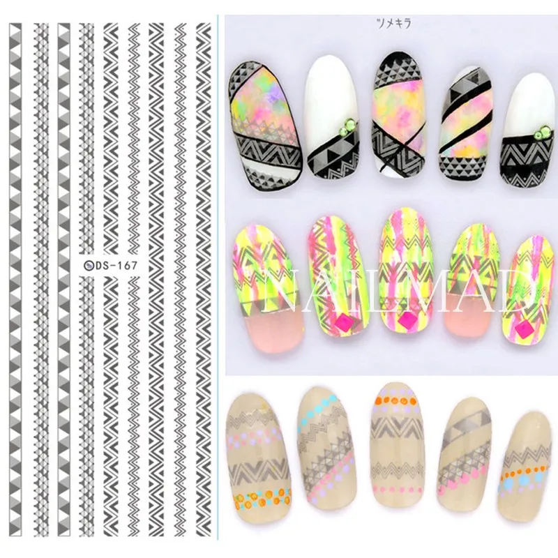 1 лист черных переводных наклеек для ногтей с шевроном, треугольные переводные наклейки, геометрическая форма, наклейки для дизайна ногтей, украшения DS167