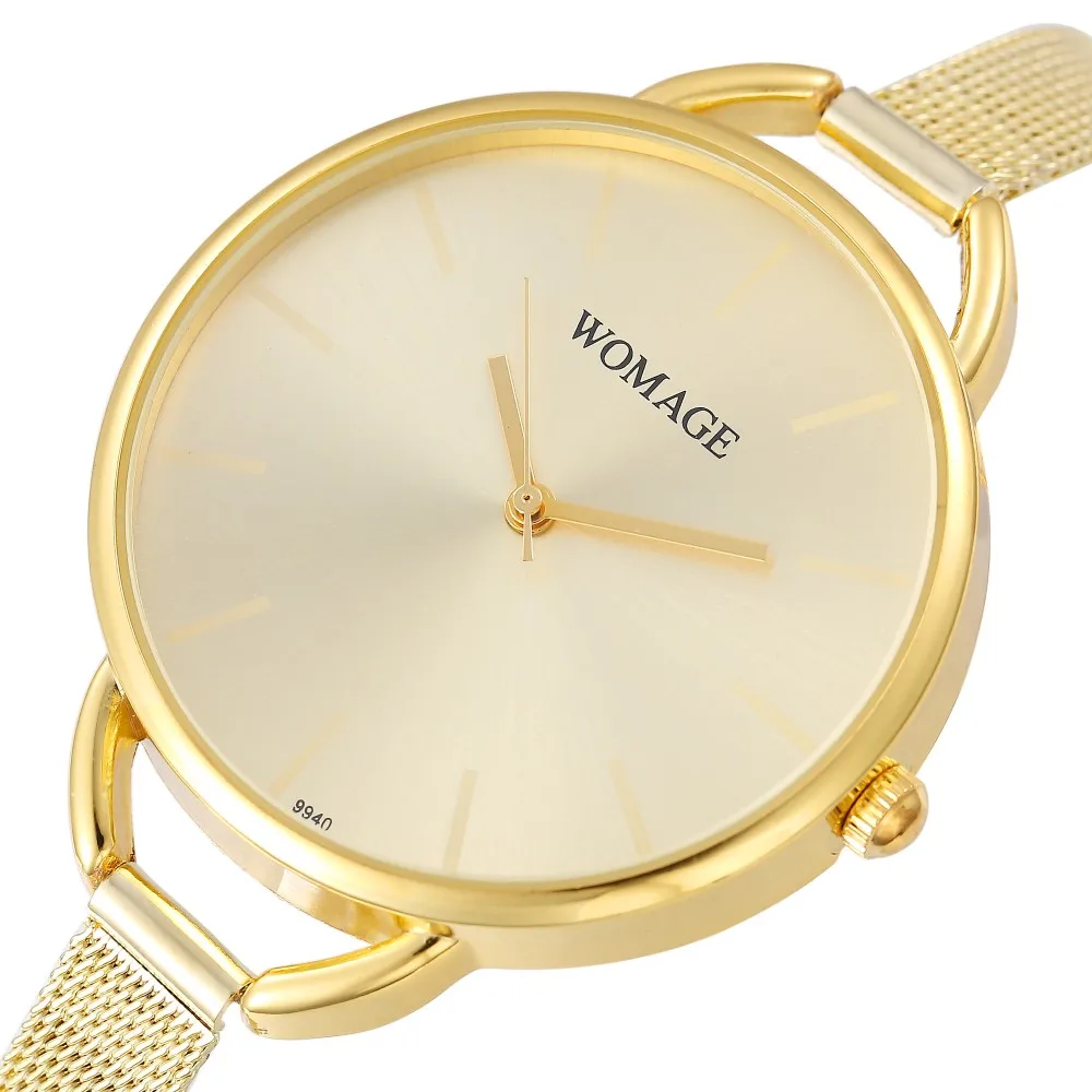 Часы наручные женские из нержавеющей стали, роскошные золотистые