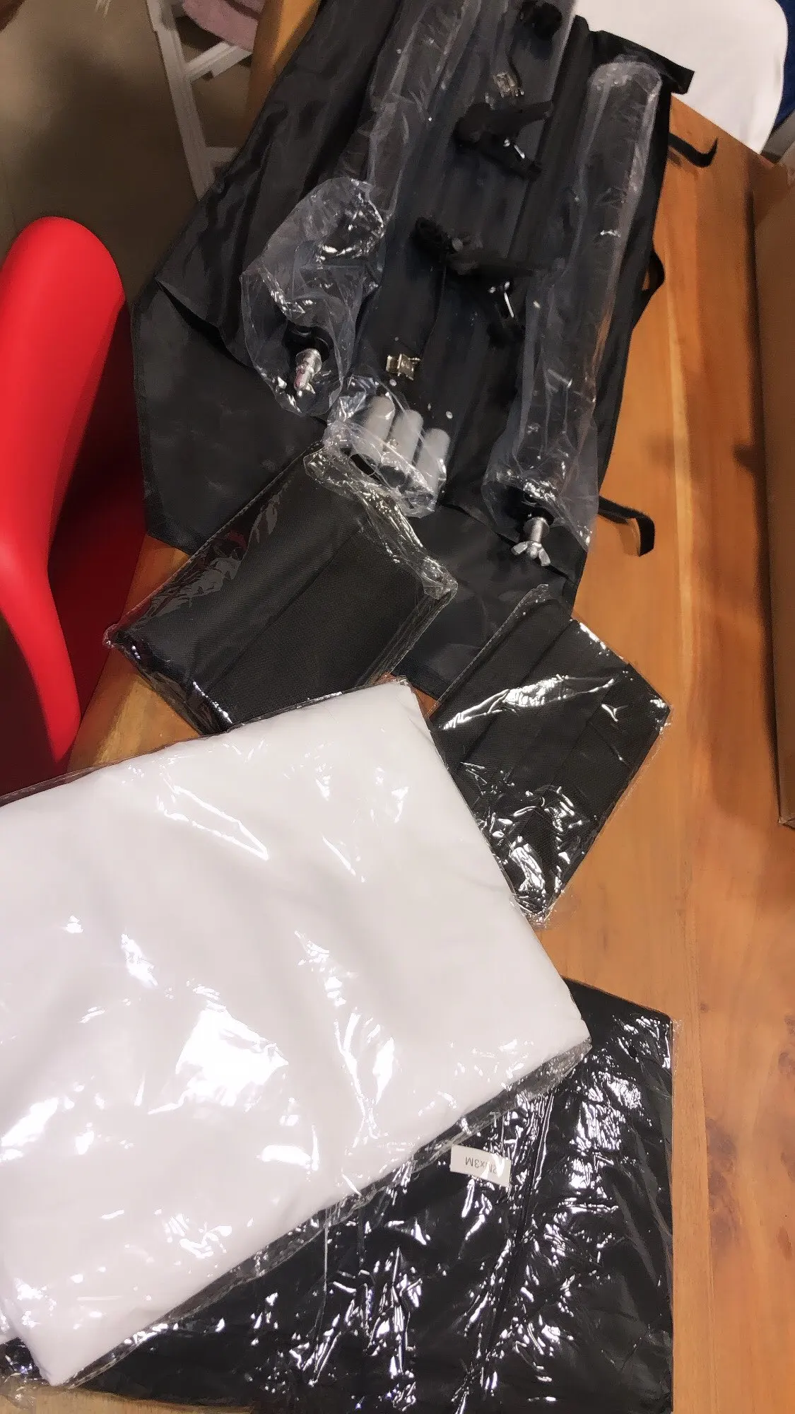 Посылка шла около месяца. Все приехало в целости и сохранности. Отличный фон. Ткань хорошего качества и прошито хорошо. С лицевой стороны "матовая", с обратной - немного с блеском. Заодно попробовал в качестве мобильного фона для проектора - за не имением экрана сойдет, но конечно полноценный не заменит. Рекомендую и товар, и продавца.