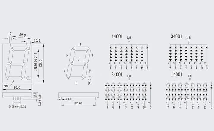 Roduct Название: светодиодный цифровой трубка Модель продукта: общий анод Цвет изделия: белый светильник Модуль (4 дюйма)Трубка Диаграмма размеров и схемы: 122*90*15 мм