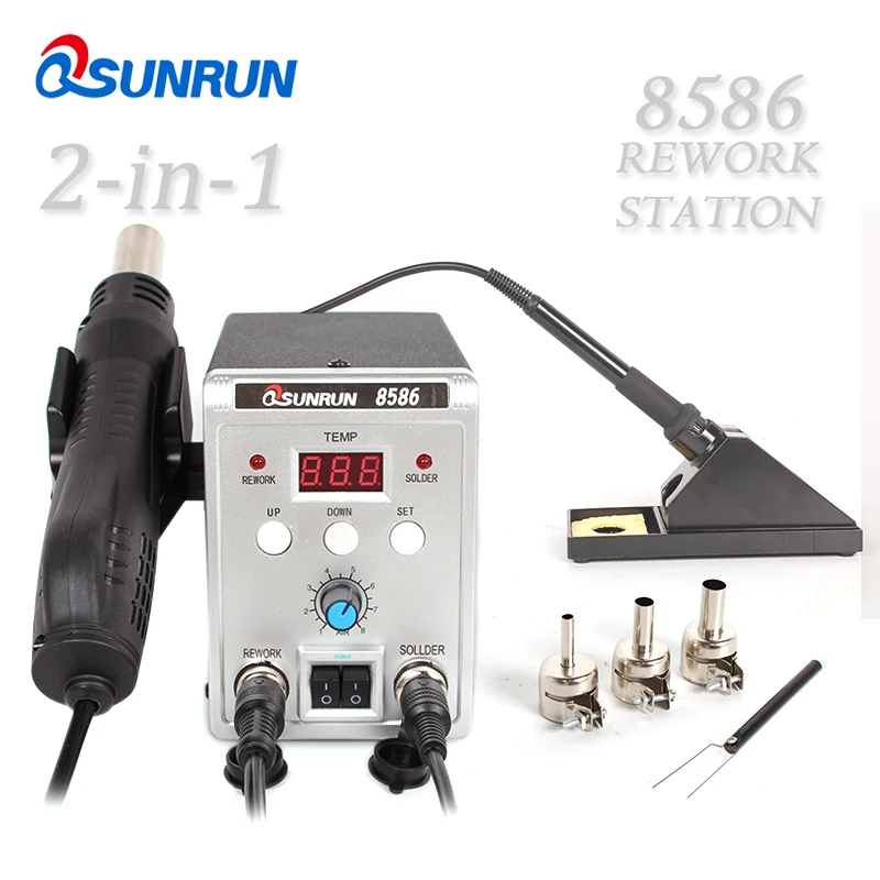 Это совершенно новая паяльная станция SMD 2 в 1 8586. Металлический корпус из сплава с высококачественным силиконовым корпусом отличается элегантным внешним видом и энергосбережением. Вы можете использовать Термофен и паяльник отдельно, без помех друг другу. Благодаря ручке с сенсорным переключателем система может быстро получить доступ к режиму работы, захватывая ручку. При этом система перейдет в режим ожидания, пока ручка не отключена. Особенно подходит для установки и переделки компонентов SMD вручную. Действительно обязательно!