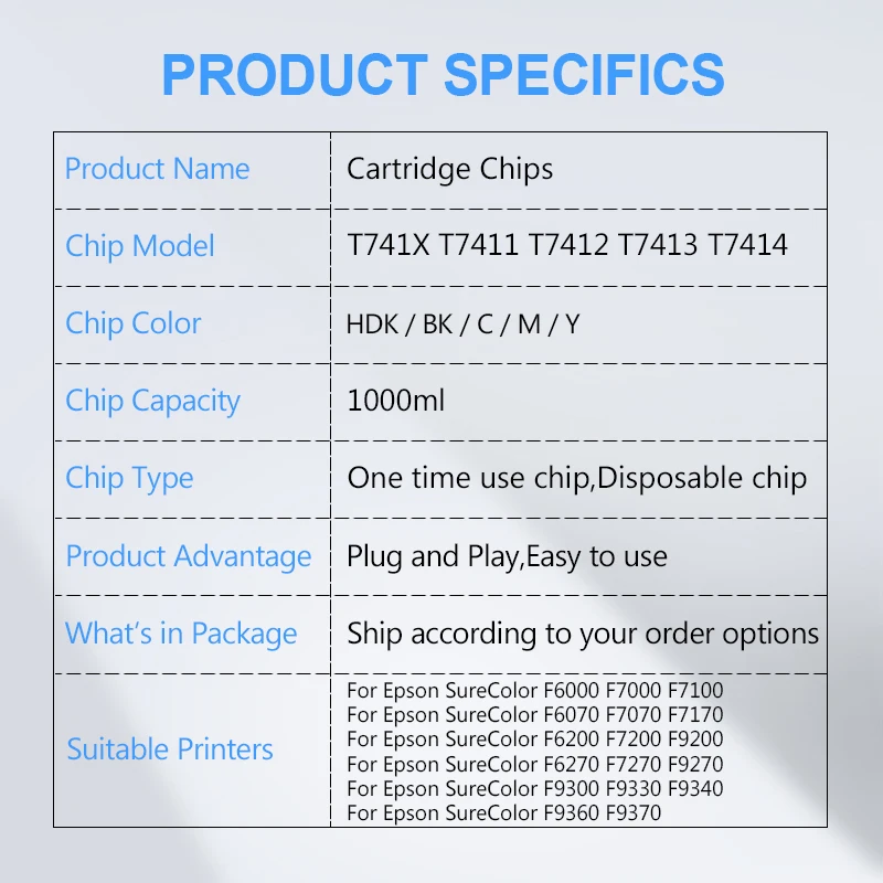 Для Epson T741X T7411-T7414 новые чипы картриджа