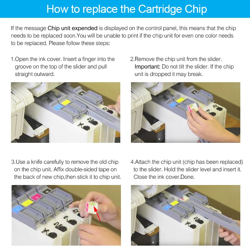 Эти недавно обновленные чипы очень стабильны, подключи и работай и показывай уровень чернил.Вы можете прикрепить чип непосредственно к чернильной подача в резервуар.Можно использовать с оригинальным чернильным пакетом, экономя стоимость печати.