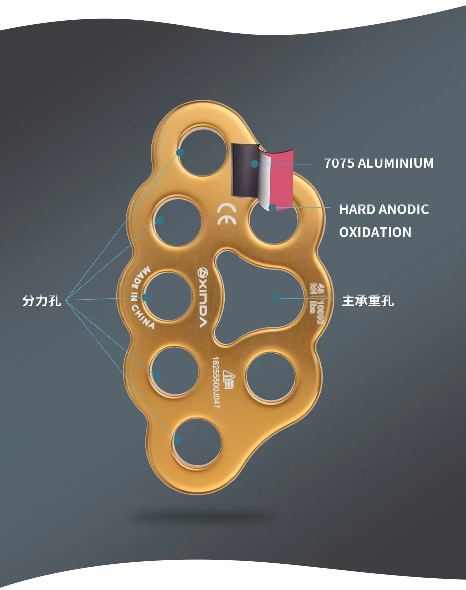 XINDA профессиональный аксессуар, разделяющая пластина для каната, разделяющая 4 отверстия, уличная пластина с четырьмя отверстиями, оборудование для скалолазания