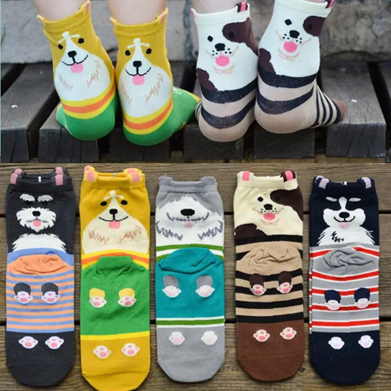 Забавные женские носки из хлопка с 3D рисунком собаки кавайные женс...