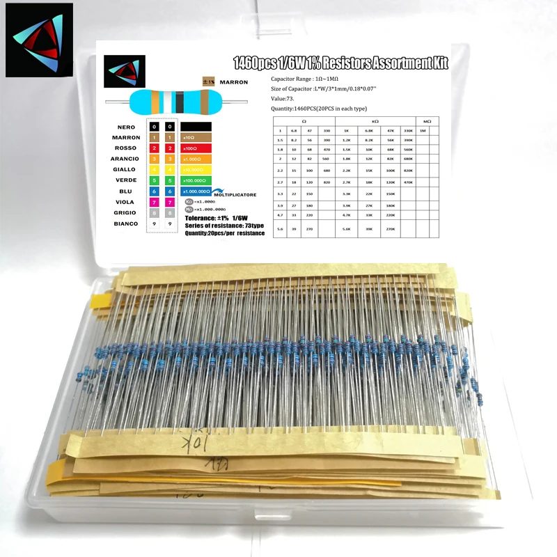 16 Вт 1% 73 значения 1R-1M 1460 шт. набор металлопленочных резисторов