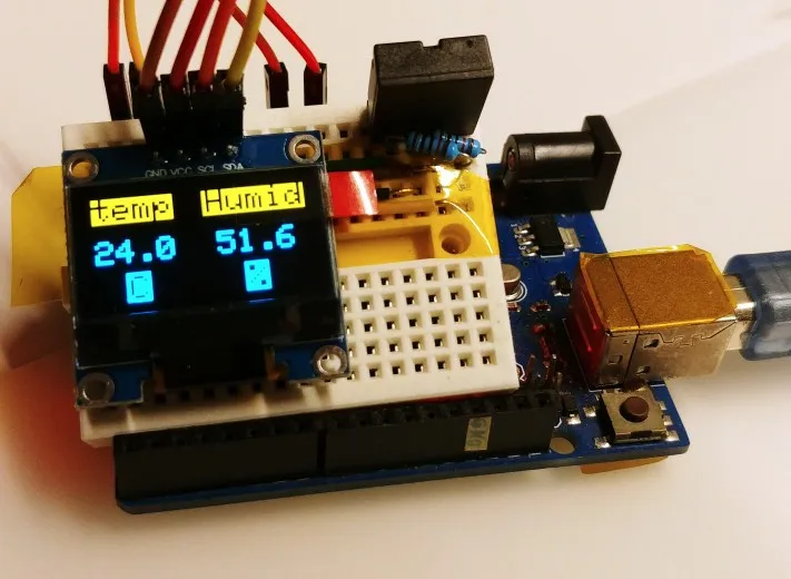all items i bought working good, here you can see the display + am2320 sensor the display is great, very sharp and can be view from any angle, but its a bit small. also the yellow color only apply to the top 16 lines of the screen, and not for the whole screen. so top 16 lines of the screen is yellow, and the rest is blue. but its still useful and for the price i really have no complains, only compliments.