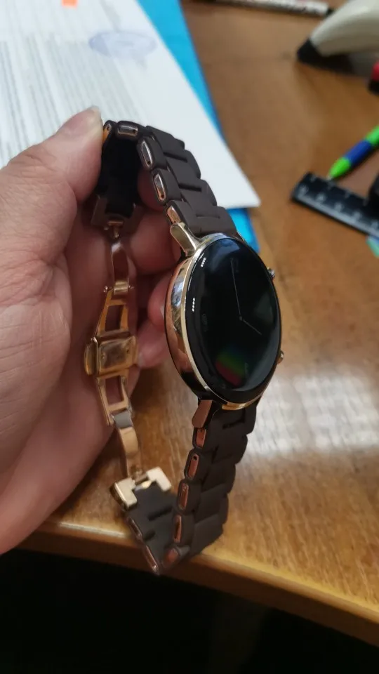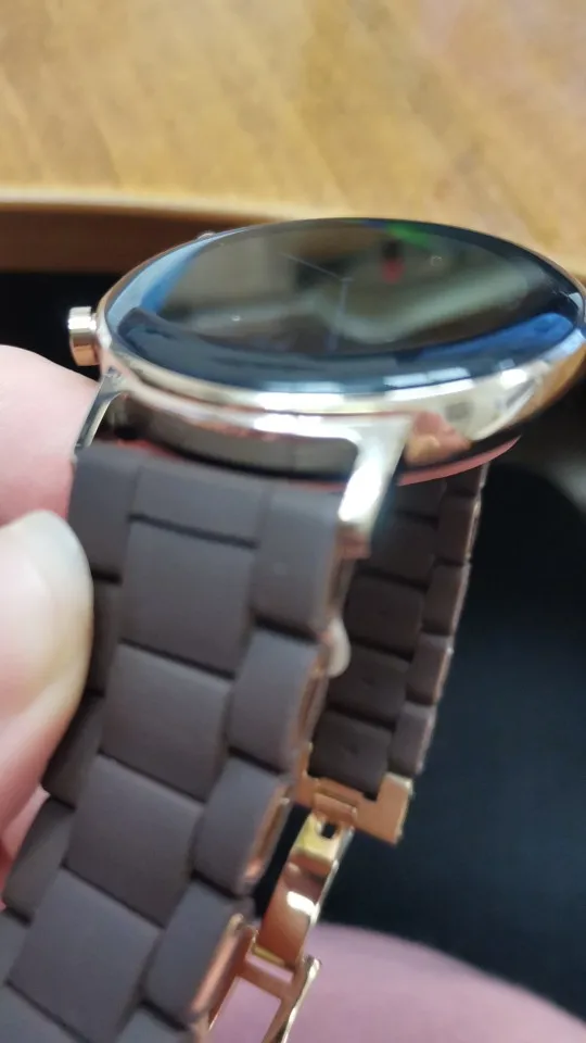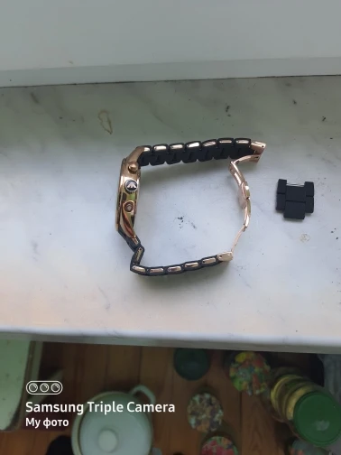 Браслет понравился, выполнен качественно. Пришлось немного с ним помучиться, чтобы он подошёл к часам Huawei. Обрезала немного и развернула обрезной стороной внутрь браслета. Вызлядит очень хорошо, не заметно, что что-то отрезала.