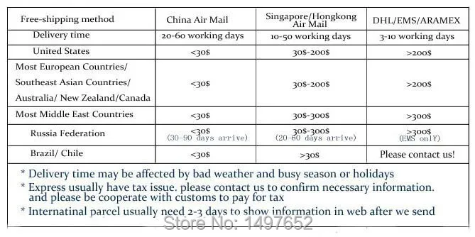 USD≥ 7 использовать Почта Китая Registered Air Mail (заказное, Авиапочта или почтовую службу «e-packet» (США)
