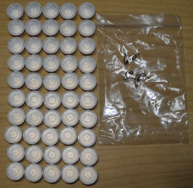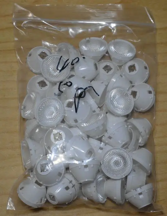 Доставка - ASS/OMNIVA + Meest-Express. Трек на всем пути. Упаковка посылки - как всегда, картонная коробка + пупырка. В пакете, как и заявлено, 50 линз. Качество изготовления линз нормальное. Без герметика на звезде 20 мм с китайским LED "CREE" 5050 линзы не держатся! Угол рассеивания линз пока не проверял.