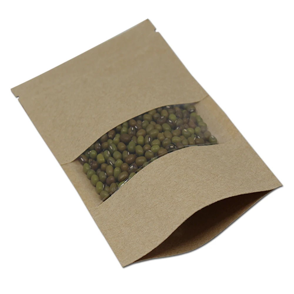 14x22 см стоьте вверх крафт-бумажные мешки коричневые Ремесло молния замок застежка-молния закрывающийся мешок для еды кофе чай хранения мешок с прозрачным окном
