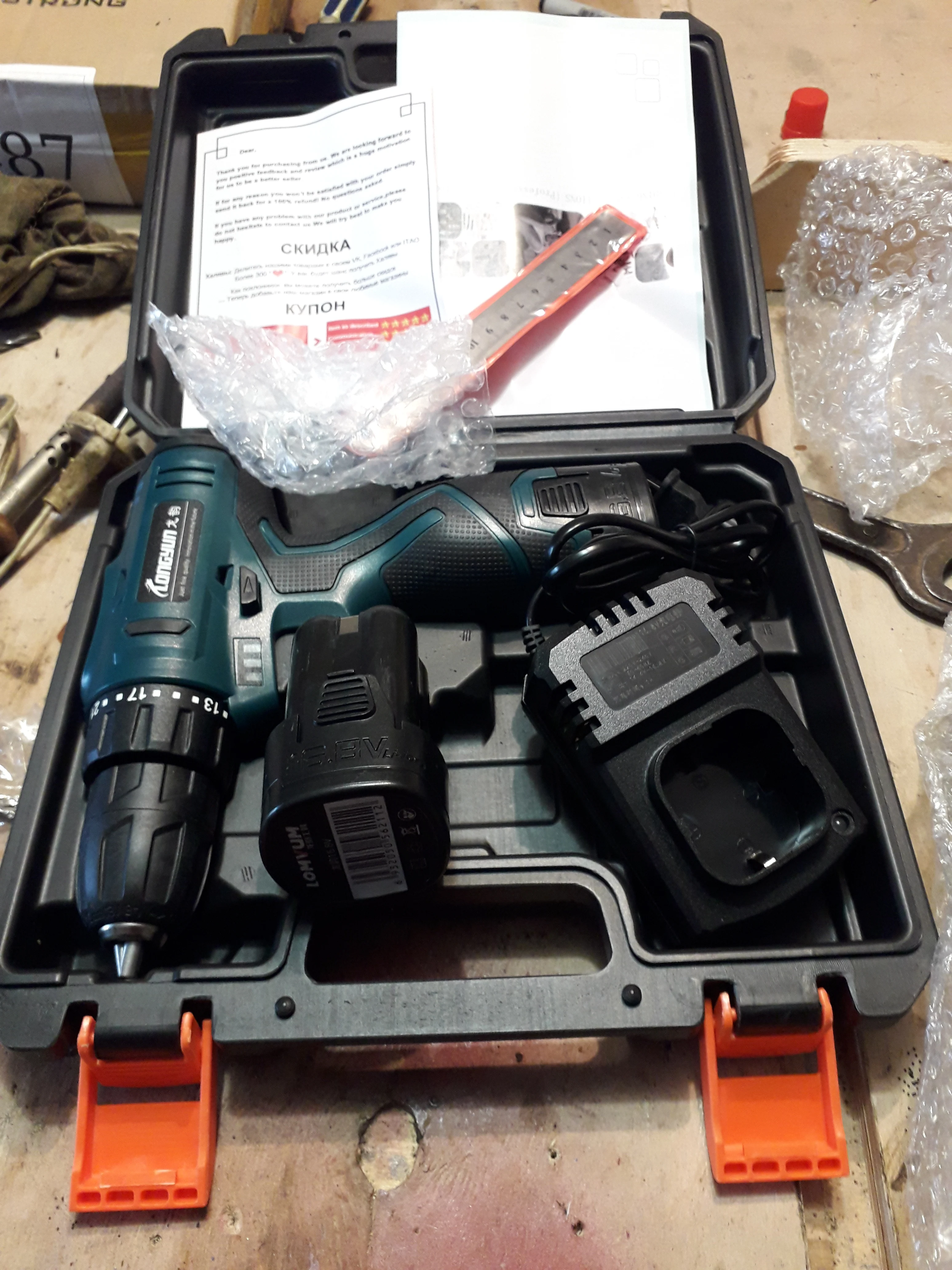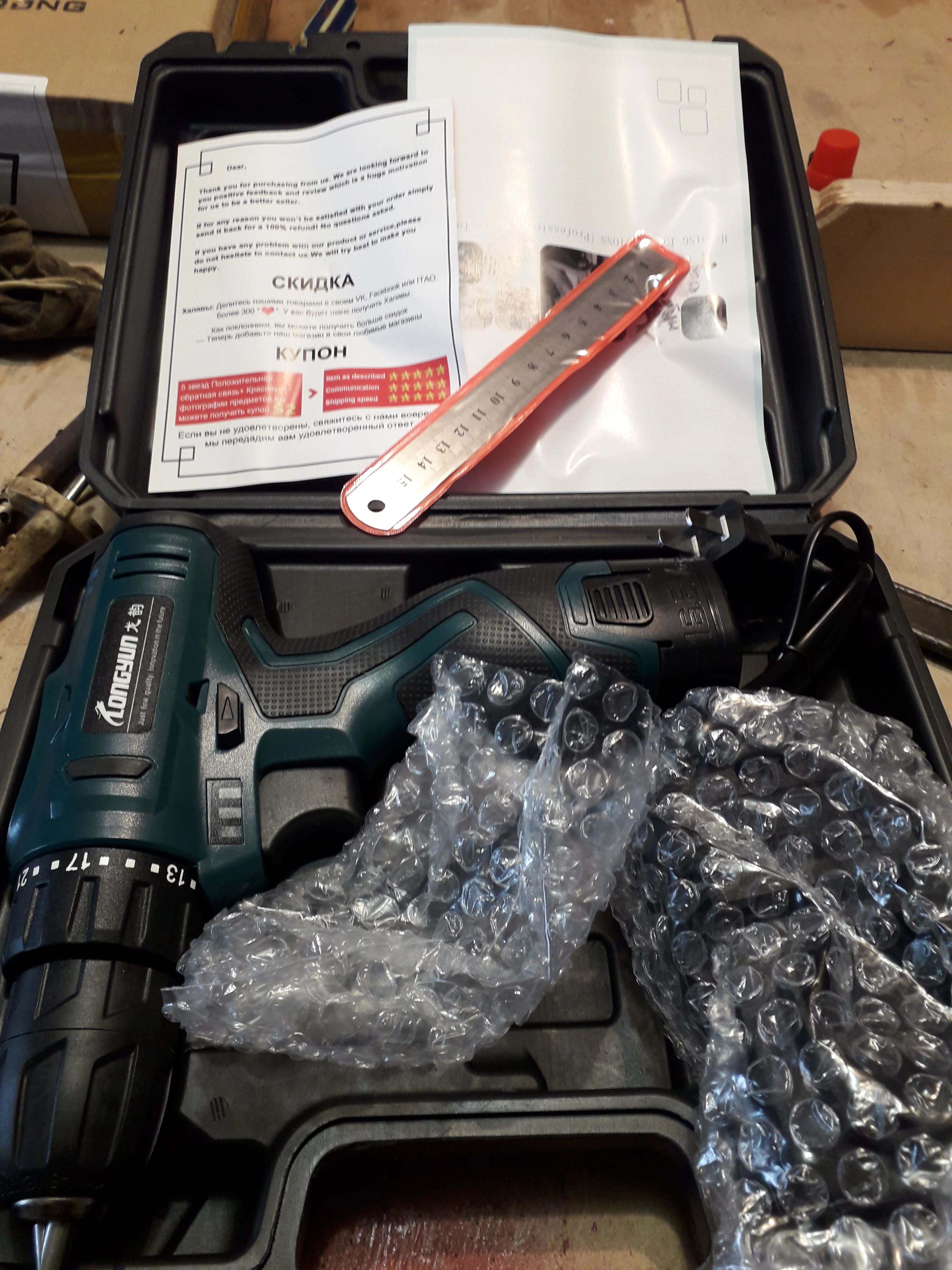 Товар получил.Время доставки 4 дня до Ставропольского края.Доставка из России.Хочу поблагодарить продавца Longyun за качественный товар. за мега доставку, за терпение к беспокойному покупателю, Продавца и товар рекомендую. Заказ делаю 2 раз на данную модель .Шурик бомба.Старому шуруповерту 3 года а пашет на ура Проблем 0 Мужики рекомендую аппарат и общительного продавца Long yun Store очень ответственный,удачи ему в торговле.Ставлю 5 звезд, Почте России тоже 5 звезд, просили оценить доставку . ДЕЛИМСЯ ДОБРОМ.