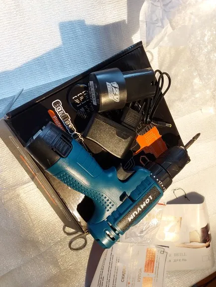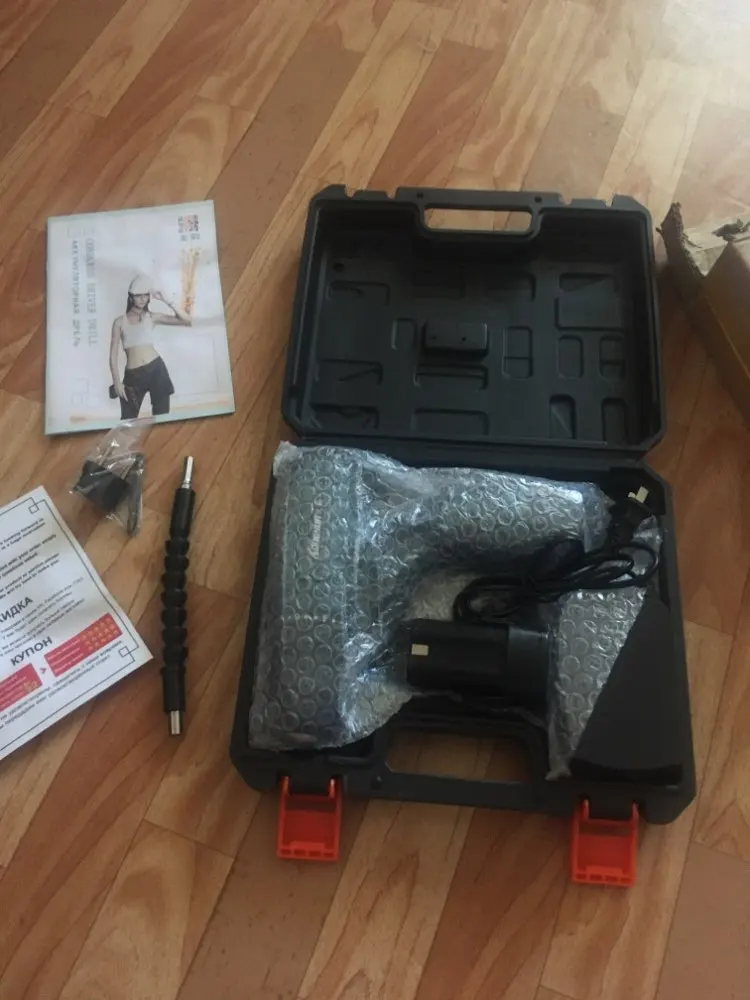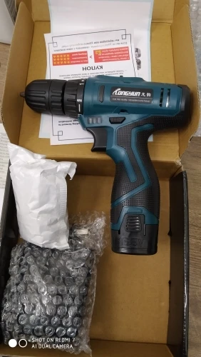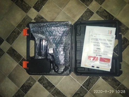 Заказал 11.11.20, забрал с почты г.Красноярска 21.11.20 доставку ставил из РФ. Пришёл в картонной коробке, была целая, ничего не побито. Первое впечатление отличное от шуруповерта, пластик не плохой (но не такай как у премиум инструмента) прорезинен, в руке лежит удобно, но показался тостовата ручка ближе к аккумулятору, но не критично. Люфтов не наблюдаю. Порадовал кейс, очень маленький прям, как игрушечный, но всё лежит на месте (шурик, зарядка и 2й аккум). Продавец в подарок положил переходник с китайской вилки, 2хСторннюю биту и гибкий вал. Я доволен , в серьёзной работе пока не пробывал.