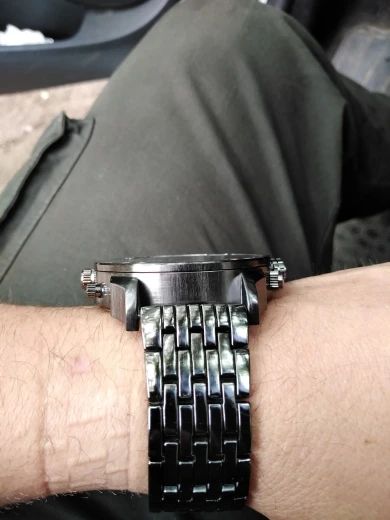 El reloj llegó en buen estado sólo faltó que viniera en una cajita . El reloj es cómo sale en la foto y igual de grande cómo sale en la foto . Estoy muy contenta con mi pedido y me llego unos días antes del periodo que ponía por el momento no tengo ninguna queja .