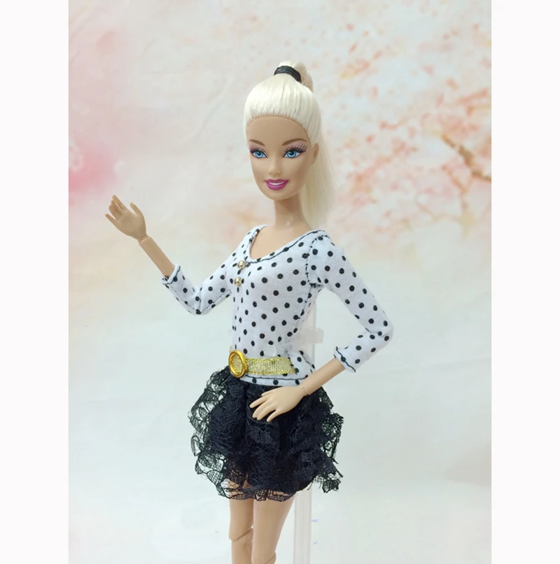 Черно-белое кружевное мини-платье в горошек, платье-пачка для кукол Барби, для шарнирного кукольного домика 16, аксессуары для кукол