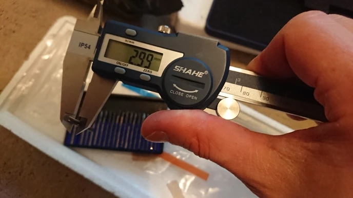Доставка за три дня со склада в России - это рекорд по моим покупкам на Али. Штангенциркуль упакован в пакетик (губки проложены промаслянной бумагой), далее в пластиковый кейс (реально кейс, не коробочка :)) с поролоном, бумажная обёртка, пенопластовая коробочка и пакет, в общем с упаковкой полный порядок! В комплекте две батарейки CR2032 и ключик для открывания батарейного отсека. Штангенциркуль сделан очень качественно, люфтов нет, повторяемость результатов в районе 0.01 (точнее практически всегда 0.0, если измерять одинаково, т.ч. погрешность скорее от моих рук). Калибровочных длин нет, поменял, что было под рукой, очень похоже, что заявленная точность выдержана. Рекомендую продавца и товар!