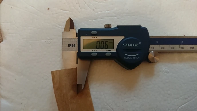 Отличный прибор. Протестировал. Погрешность в пределах 0.02. Почти как микрометр)) Измерил бумагу, показал 0.11. Измерил кальку из коробки, показал 0.04. Довольно точная штука за свои деньги. Я бы даже сказал, что для домашних нужд это более чем точно. Пришёл в красивой коробке. Упаковано качественно. 2 батарейки были в комплекте. Батарейки 2032. Штанген весь металлический, кроме блока с экраном и шкалы. Зазор между губками есть. Но он просто микрон какой-то. Я просто очень дотошный)) Нормальный человек зазора бы не увидел) Заказывал из России. Заказ пришёл за 5 дней.