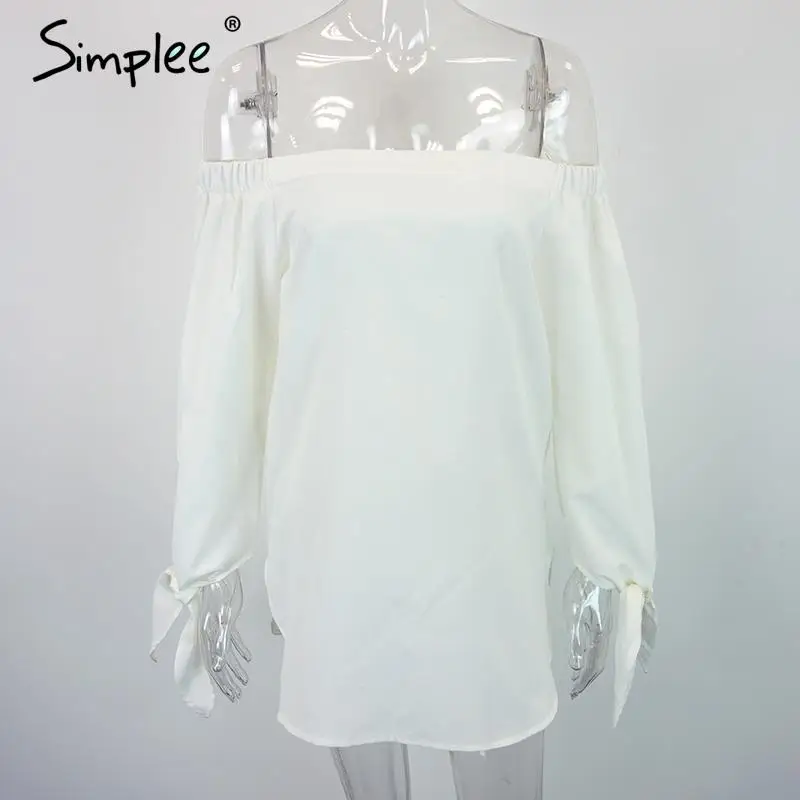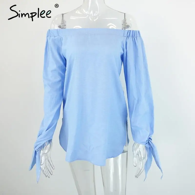 Женская голубая блузка Simplee с бантом, женская летняя белая блузка с открытыми плечами, женские топы, синий полосатый топ, рубашки