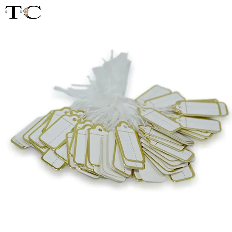 100 шт. ювелирные изделия нанизанные ценники с нитью Золотой товар ткань этикетка, бесплатная доставка