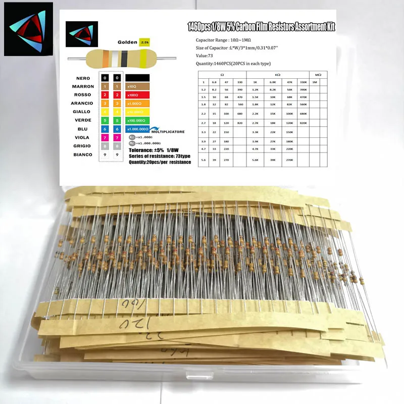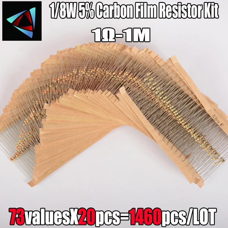 18W 5% 73valuesx20pcs = 1460pcs 1R 1M Ohm карбоновая пленка Комплект резисторов в ассортименте