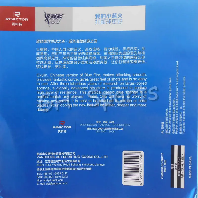 Реактор Ckylin, маленький синий огонь, большие поры, Pips-in, резина для настольного тенниса с синей губкой