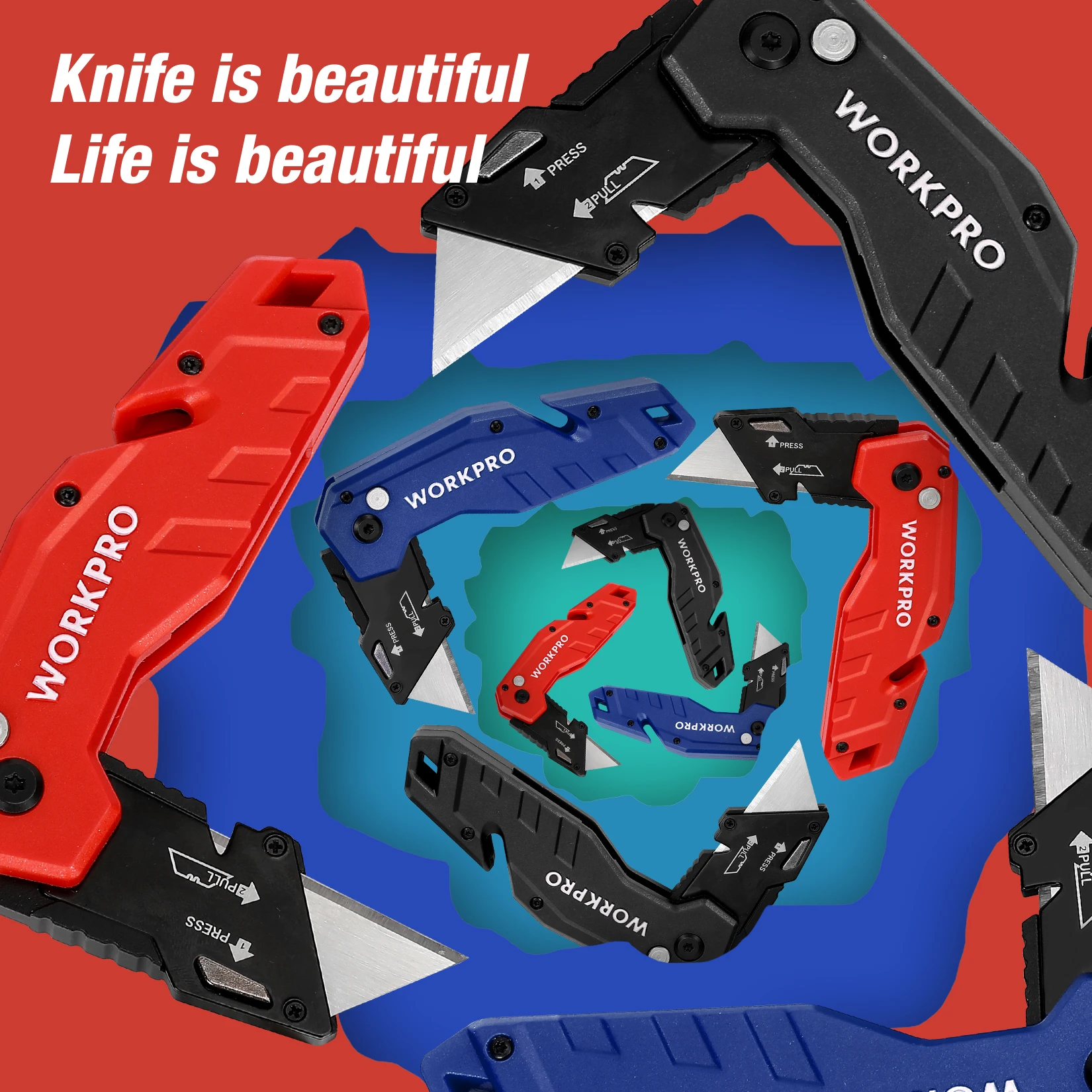 Складной нож WORKPRO, универсальный быстросменный клинок, уличный инструмент для кемпинга, лезвие в комплекте 10 шт.