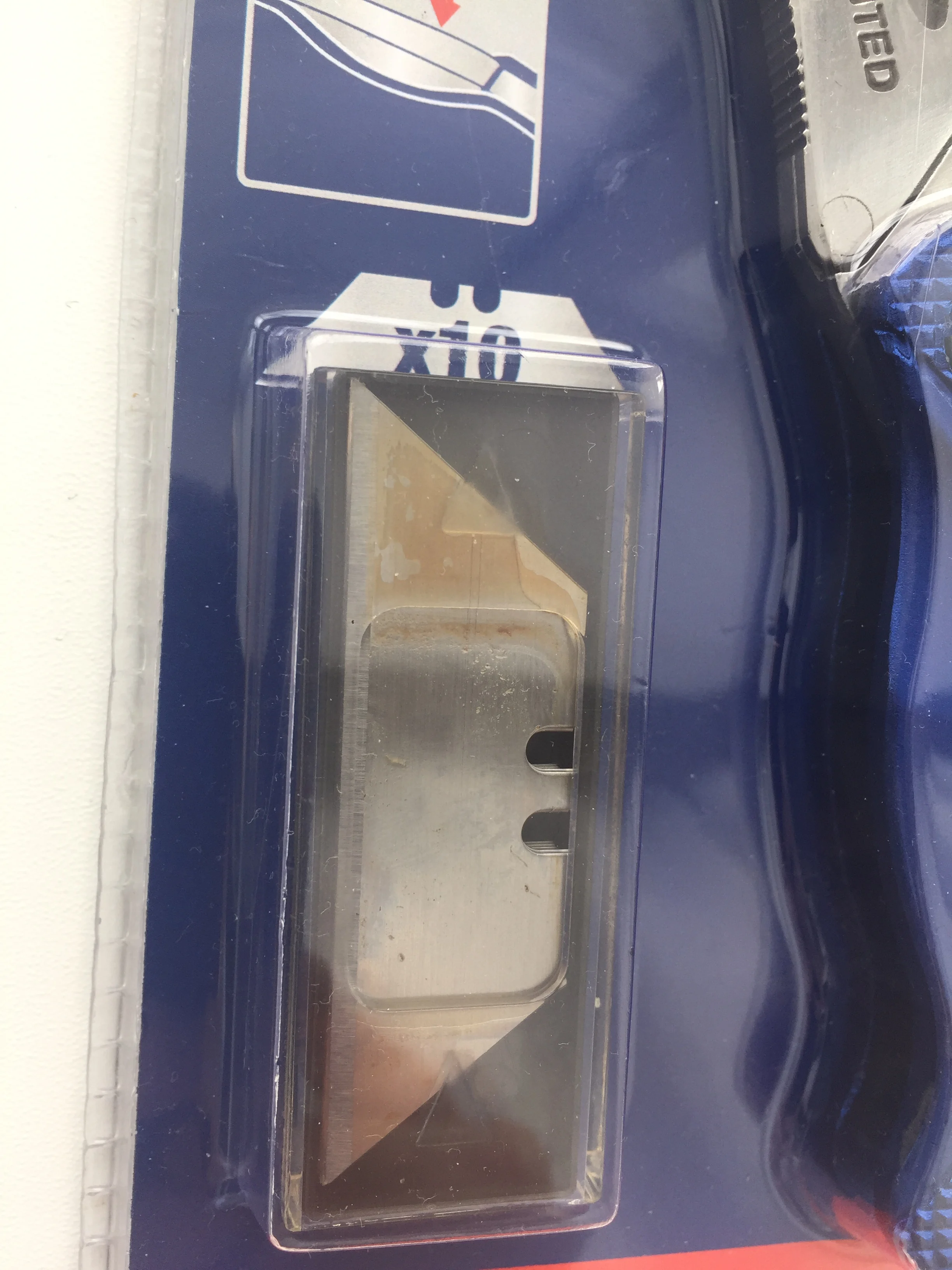 Надёжная упаковка. Доставка Мистэкспресс чуть больше месяца. Нож отличный,увесистый. Удобно лежит в руке. Хорощо продумана защита от порезов. В комплекте идёт коробочка с дополнительными лезвиями. Взяла для работы с кожей.Приобретением очень довольна. Магазин рекомендую.