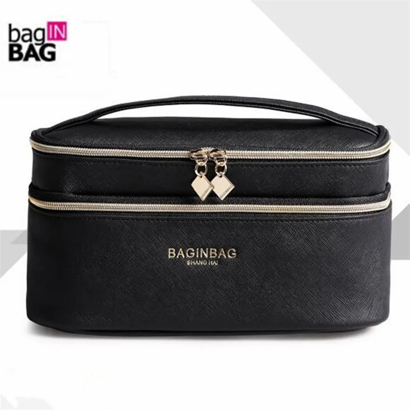 Модная двухслойная брендовая косметичка через плечо из искусственной кожи, многофункциональная косметичка, органайзер, косметичка, Несессер для туалетных принадлежностей