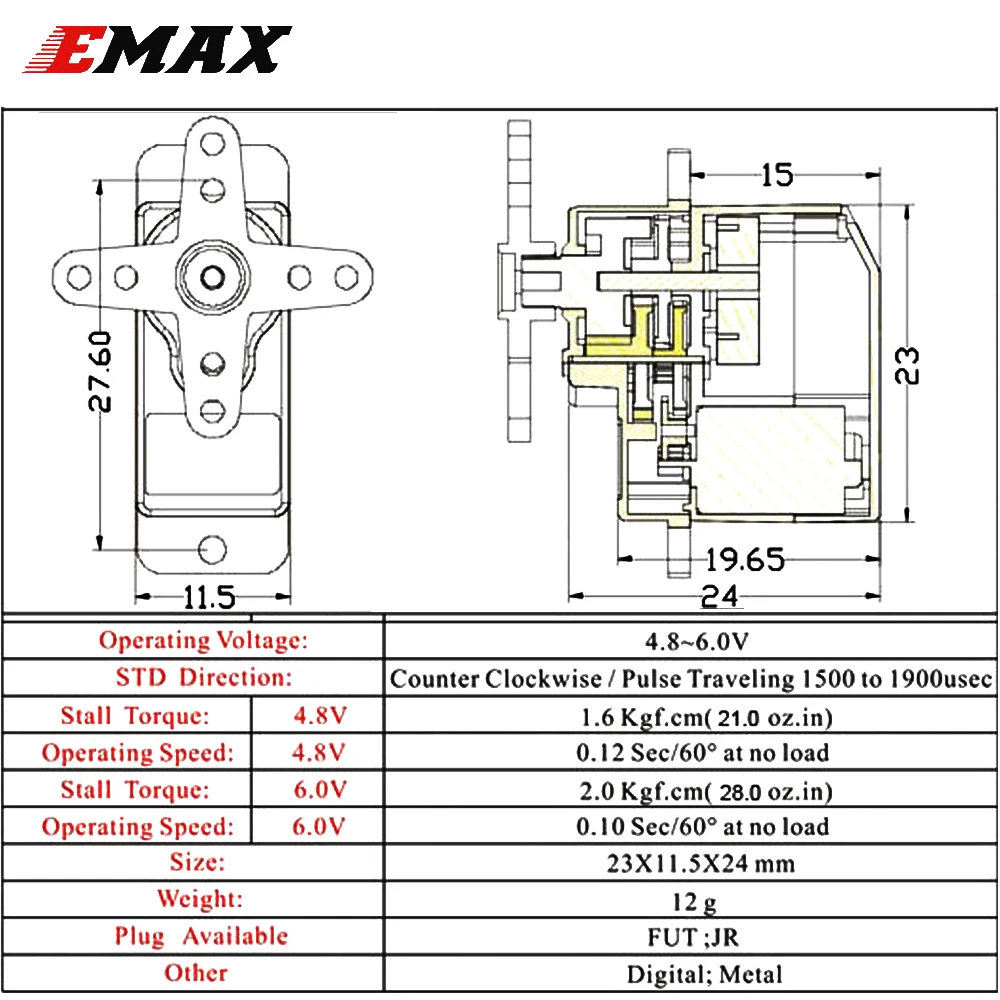 Цифровой сервопривод EMAX ES08MD, 4,8-6,0 в, 2,02,4 Кг, см, совместим с Futaba JR, для игрушек, самолетов TREX 450