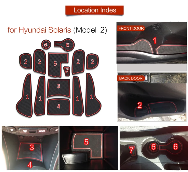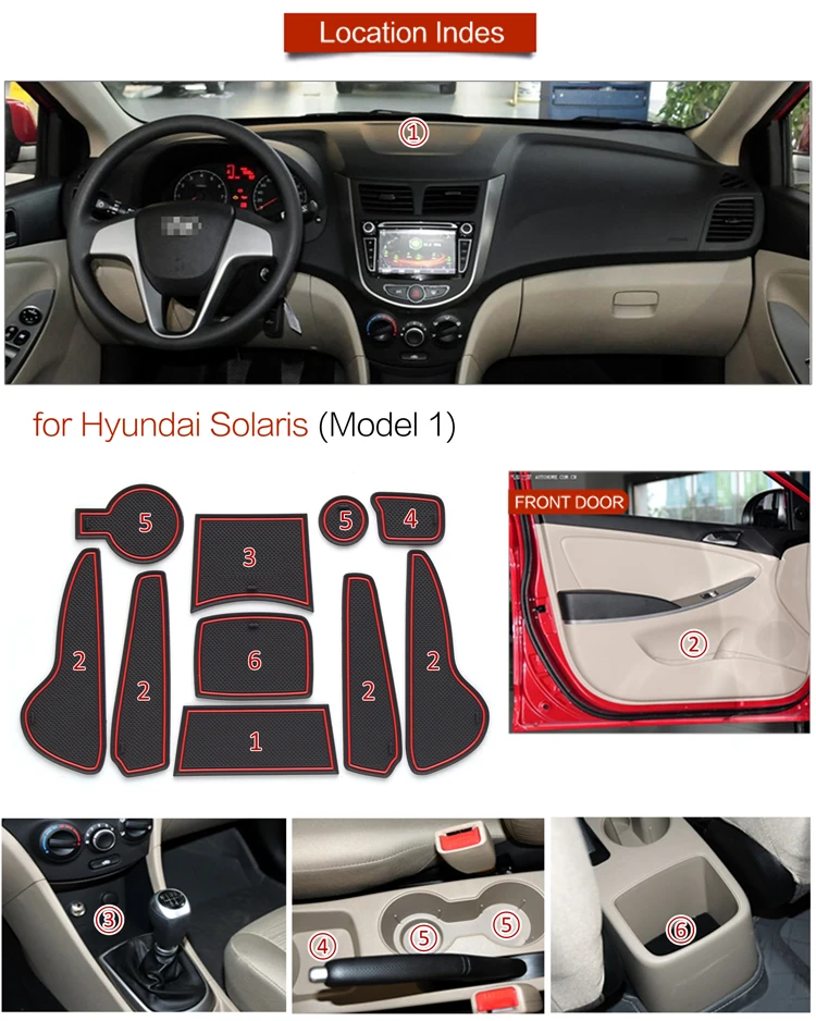 Резиновая подставка под прорези для ворот, для Hyundai Solaris 2011-2016, нескользящий коврик для интерьера автомобиля