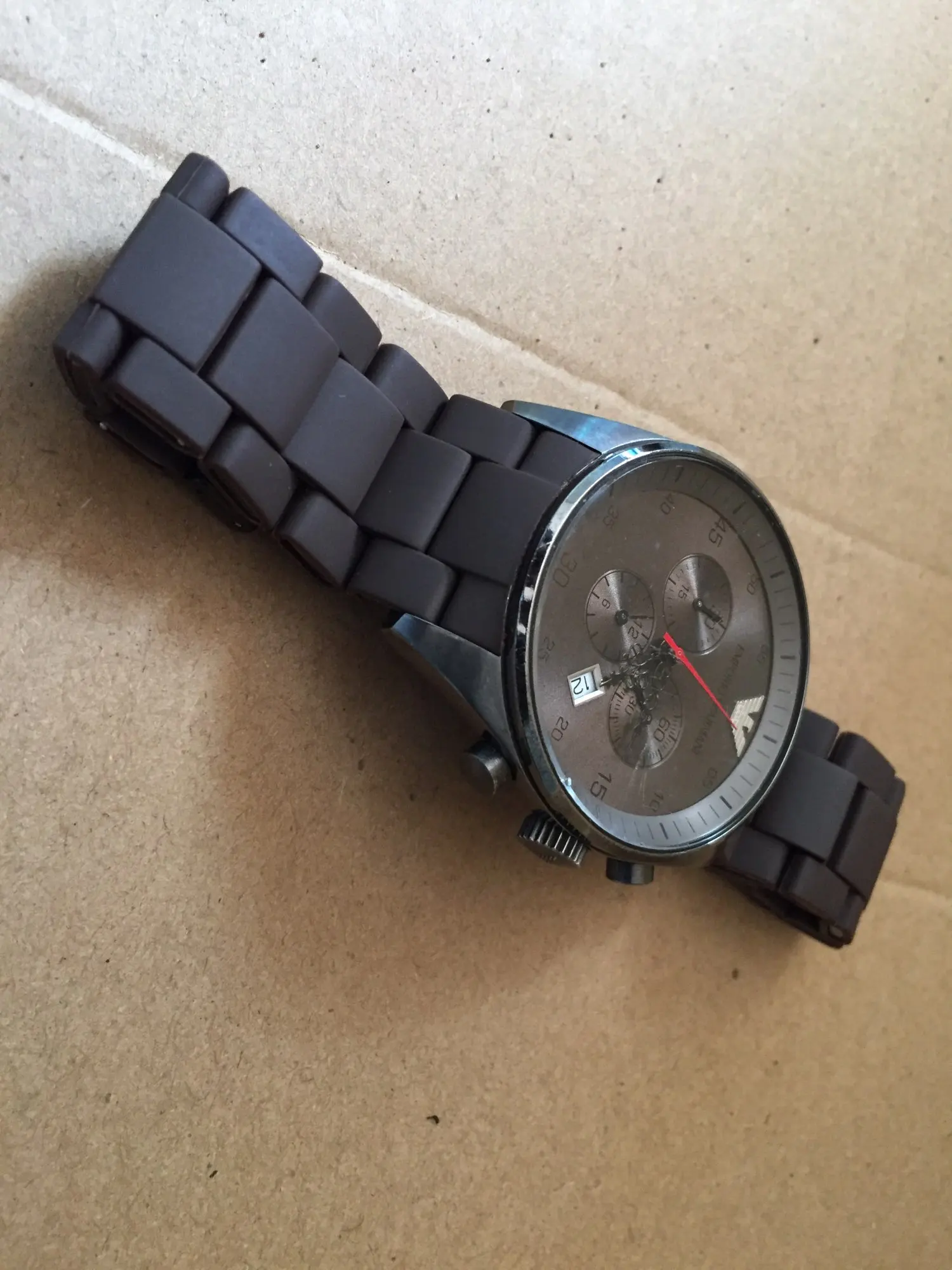 Не прочный, легко отломился от часов при свободном падении с высоты рук
