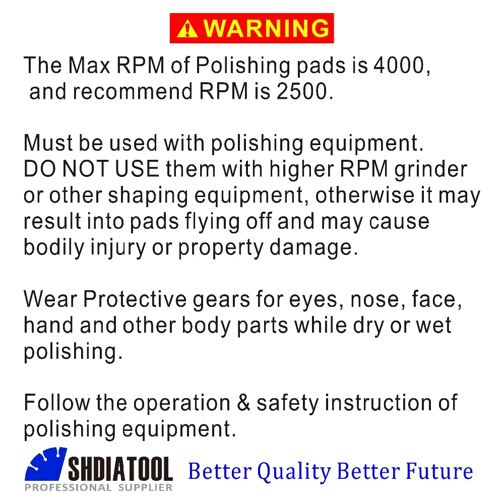 Применение:Подходит для различных видов алмазных полировальных подушек, шлифовальных дисков или шлифовальных дисков, прочного корпуса и длительного срока службы