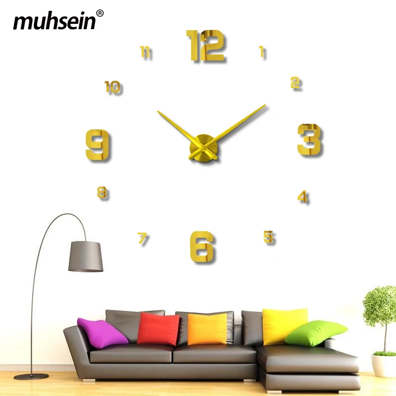 Новые современные настенные часы Muhsein с большими цифрами, 3D самодельные акриловые зеркальные настенные часы с наклейками, уникальные бесшумные часы, бесплатная доставка
