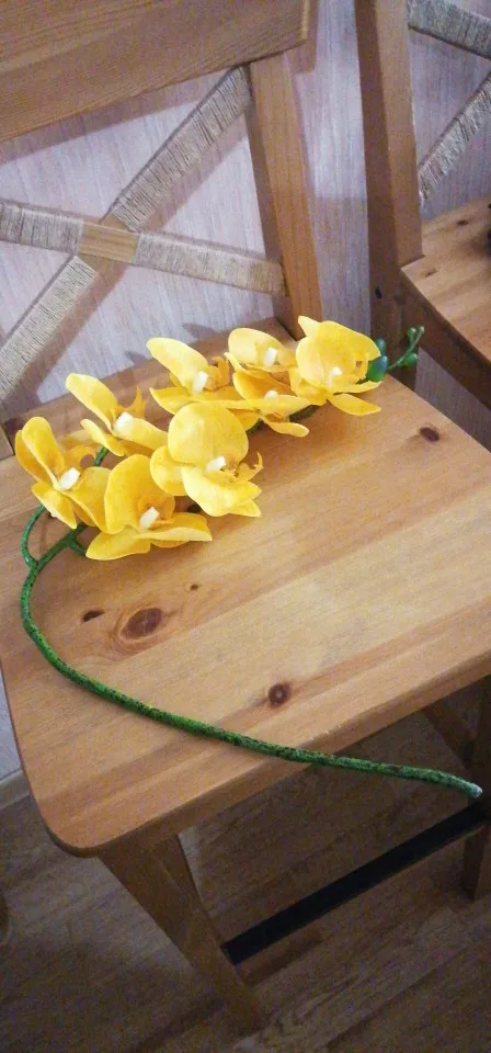 Яркий, нарядный цветок. цветы довольно крупные на мой взгляд, даже слишком. Хотя, живые тоже бывают крупные. На фото жёлтый цветочек "родной", натуральный. Смотрится ли естественно? Да, они и живые как пластмассовые. Цветы не из ткани, а как силиконовые. Думаю, мыть можно сколько угодно.