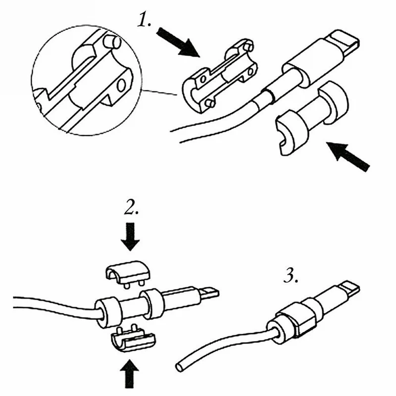 Прекратите заменять кабели зарядного устройства для iPhone. Охватывает чувствительную область, в которой кабель для зарядки и кабель для наушников отвечают разъему для зарядки, чтобы не допустить легкого сгибания кабеля для зарядки. При его использовании риск износа и поломки уменьшается на 90%
