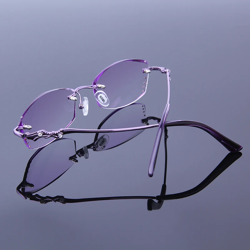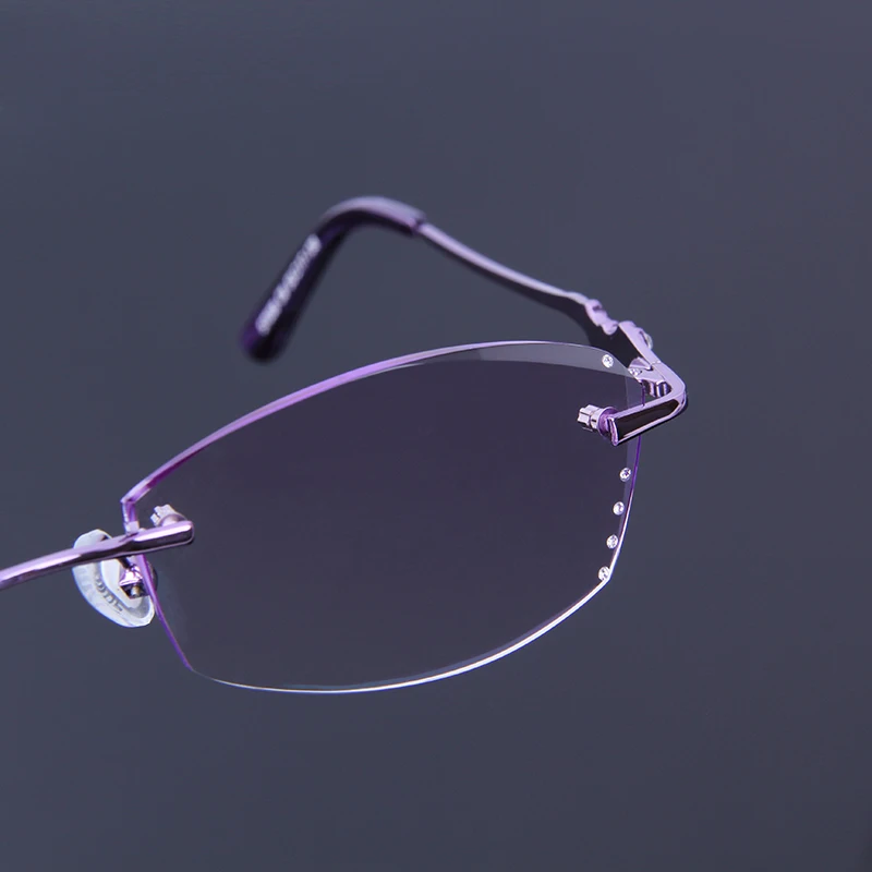 Очки для чтения S7038 женские, прозрачные линзы с УФ-покрытием, без оправы, для дальнозоркости, с фиолетовой отделкой