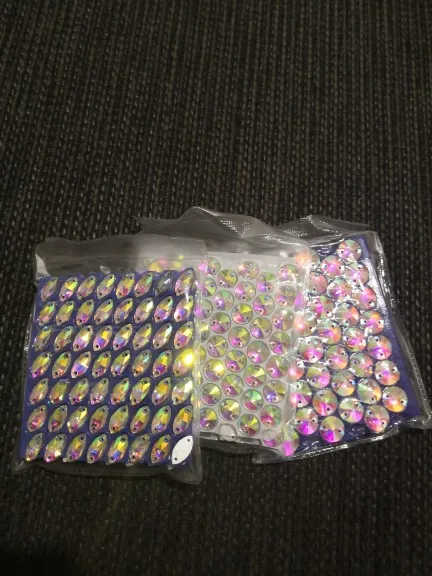 Качество так себе, очень толстые, попадались с браком, упаковано весьма странно. Доставка быстрая, посылка была большая продавец разделил на 2. В подарок положили новогоднюю маску. В этом магазине брала клеевые стразы- они нормальные, пришивные тут брать большего буду.