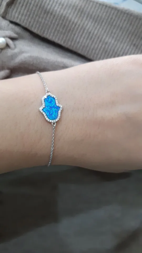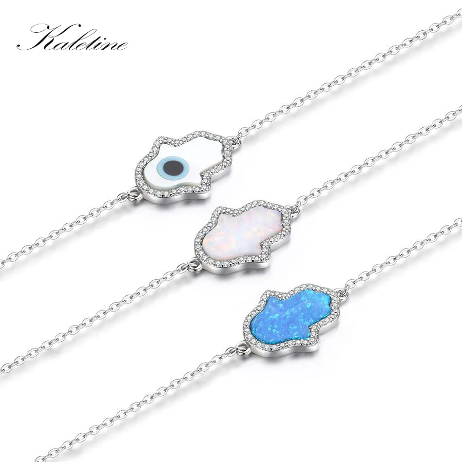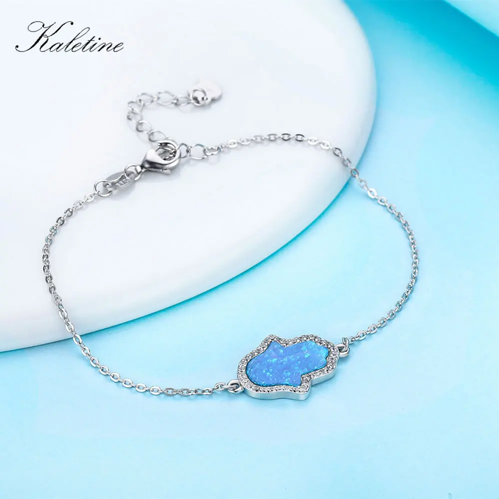 Новые модные опаловые синие белые браслеты для женщин Хамса рука Фатимы подлинное серебро 925 пробы браслет KLTB006